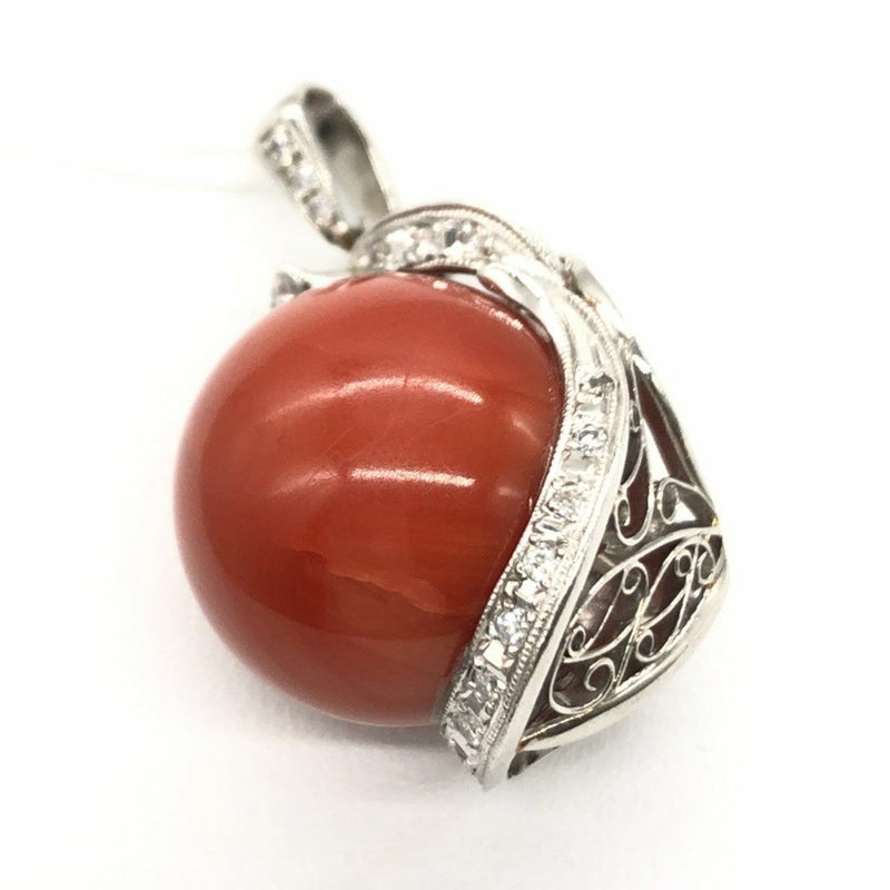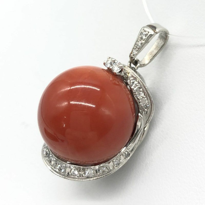 3. Pt900 赤珊瑚 ペンダントトップ 赤サンゴ コーラル ダイヤモンド 17.9mm 約15.7g