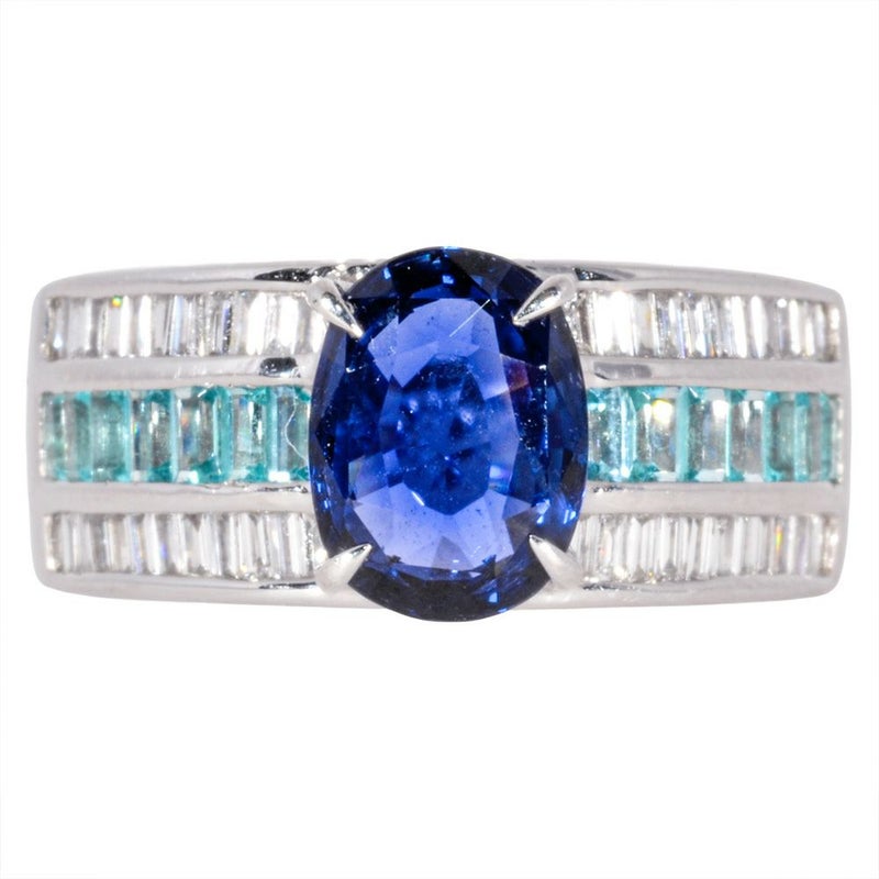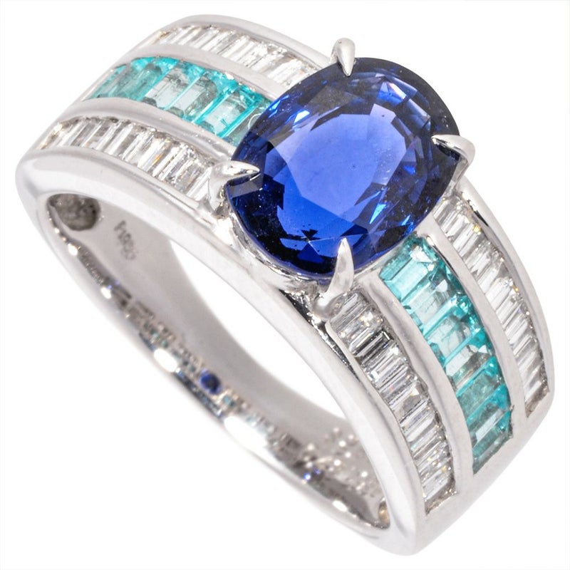 3. リング 指輪 サファイア 2.66ct 約12号 Pt950 9.3g ブルー ダイヤモンド 0.33ct パライバトルマリン 0.48ct プラチナ レディース【中古】
