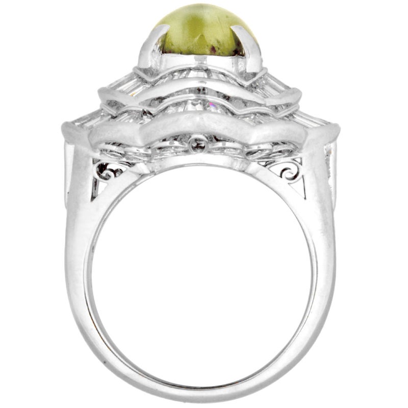 3. キャッツアイ リング 指輪 クリソベリル 6.26ct 約14号 Pt900 16.6g 褐緑色 ラウンド カボションカット【中古】