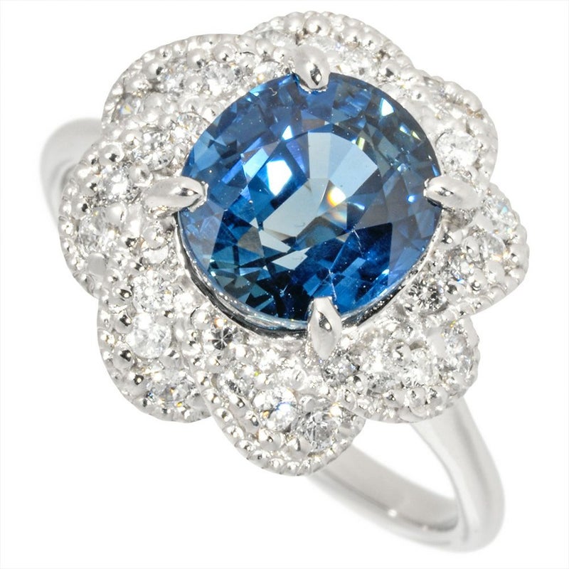 3. リング 指輪 サファイア 3.10ct 約13.5号 Pt900 6.6g ブルー 非加熱 ノンヒート ダイヤモンド 0.48ct プラチナ レディース【中古】