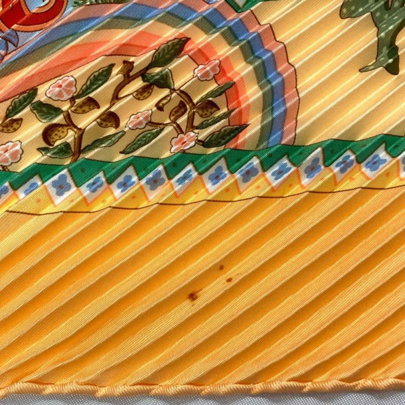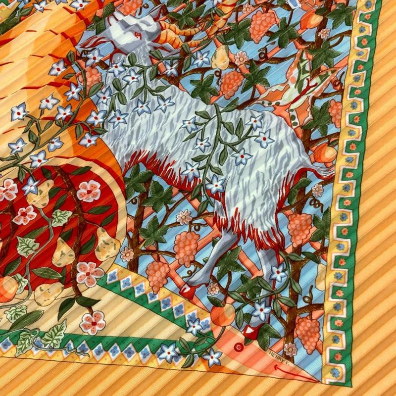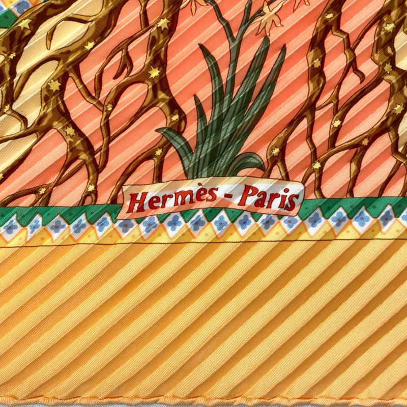 3. エルメス HERMES カレ90 プリーツ 世界の中心軸 Axis Mundi スカーフ シルク オレンジ【中古】