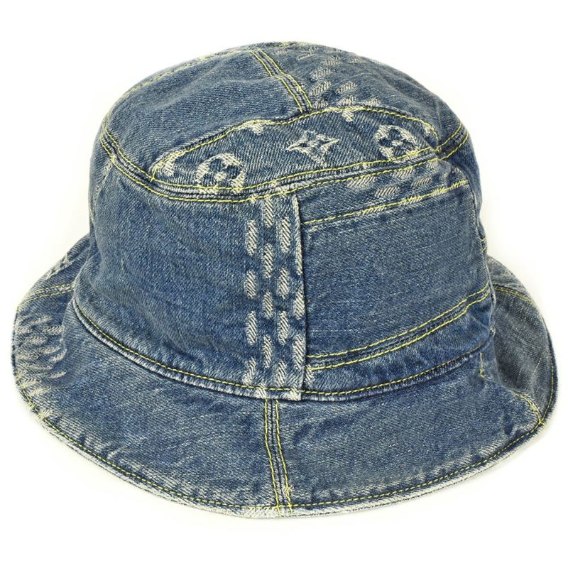 3. ルイヴィトン LOUIS VUITTON ボネ・ダミエ ジャイアント ウェーブ モノグラム ハット コットン MP2733 デニム NX0230 リバーシブル【中古】