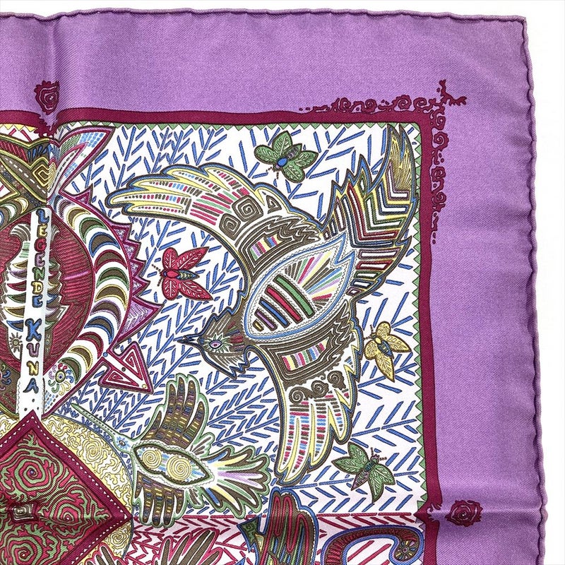 3. エルメス HERMES カレ45 プチカレ LEGENDE KUNA PEUPLE DE PANAMA パナマのクナ族の伝説 スカーフ シルク パープル ガヴロッシュ ユニセックス【中古】