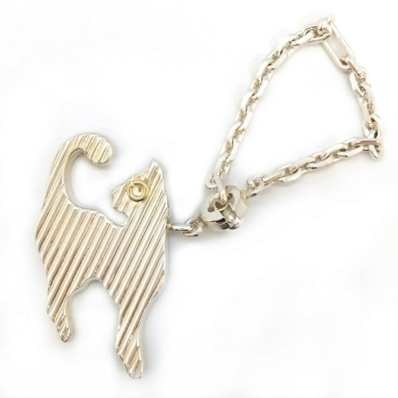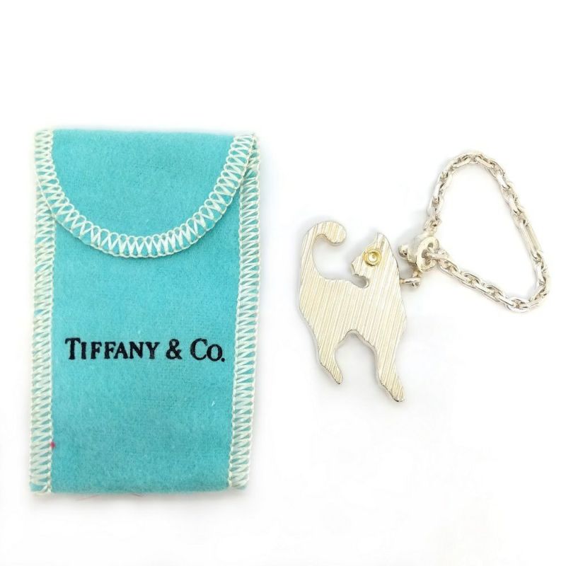 4. ティファニー Tiffany&Co. ネコモチーフ チャーム SV925 20.3g K18YG シルバー ゴールド キャット キーホルダー レア【中古】