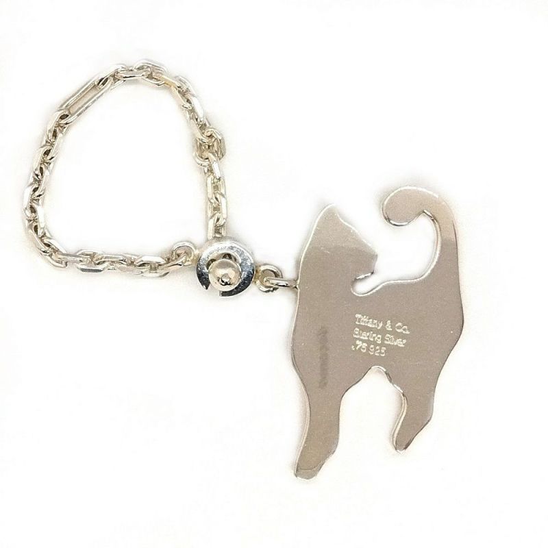 3. ティファニー Tiffany&Co. ネコモチーフ チャーム SV925 20.3g K18YG シルバー ゴールド キャット キーホルダー レア【中古】