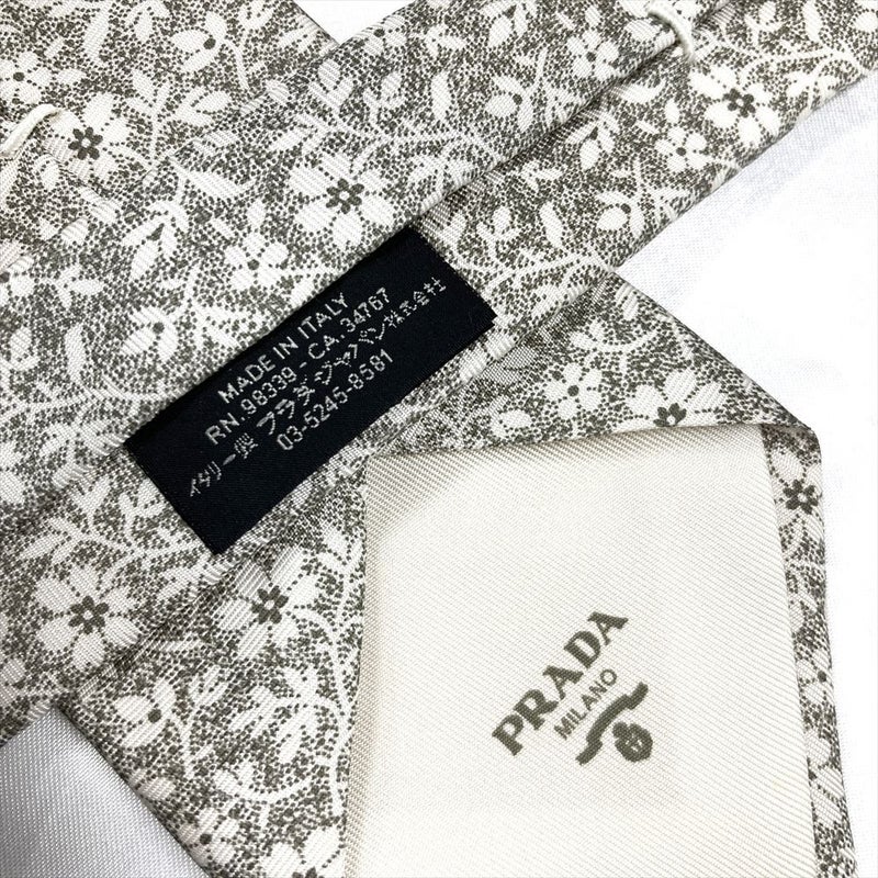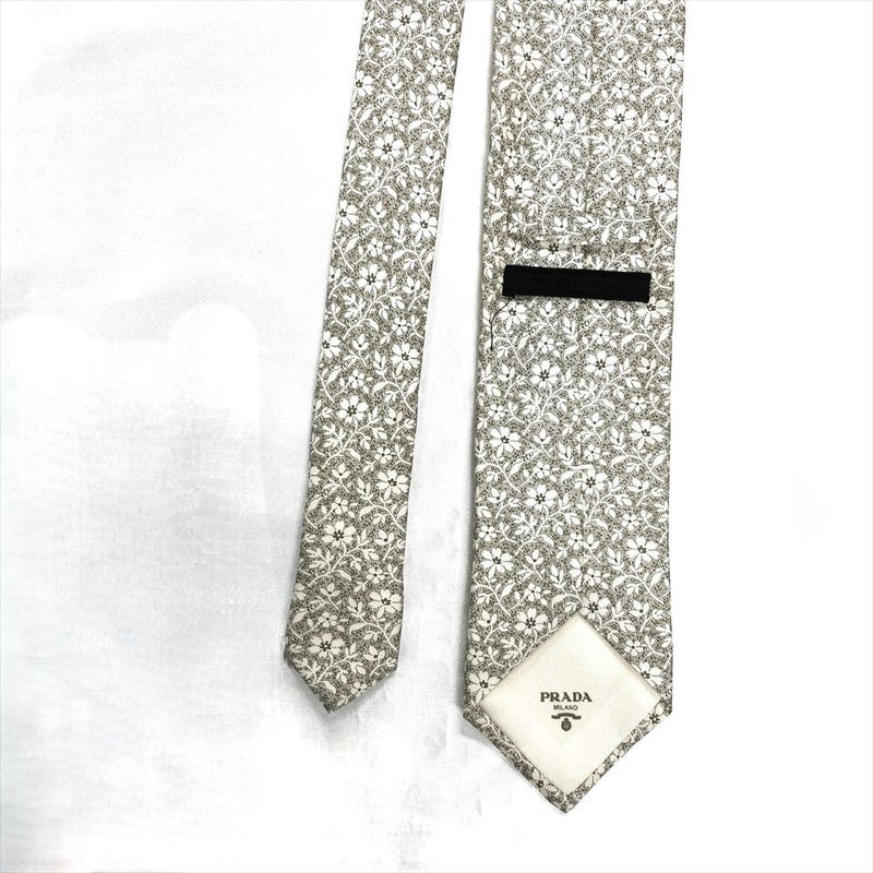 プラダ PRADA 花柄 ネクタイ シルク 152cm グレー メンズ【中古】