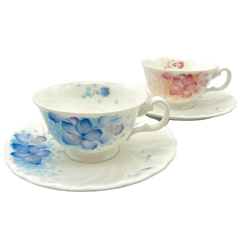 ノリタケ NORITAKE カップ&ソーサー 花柄 桜 青9901/1 ピンク9901/2 計2客セット ボーンチャイナ Noritake-N刻印【中古】