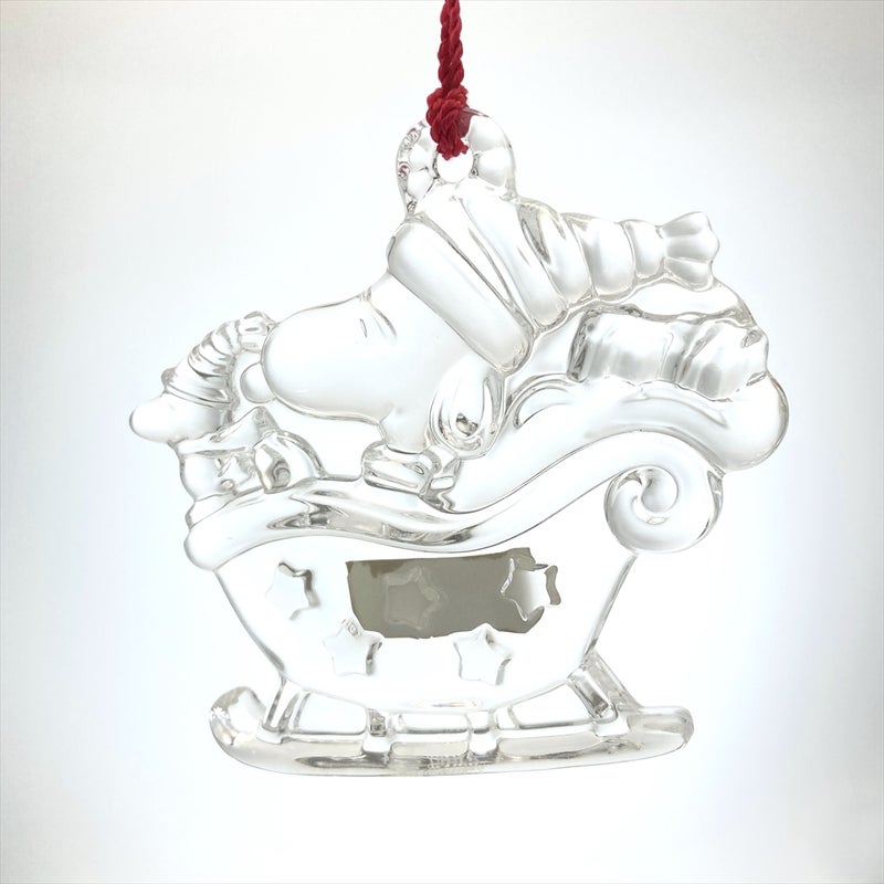 4. PEANUTS スヌーピー Crystal Sleigh Ride スレイ・ライド オーナメント 20cm クリア 50周年記念 ウッドストック MARQUIS【中古】