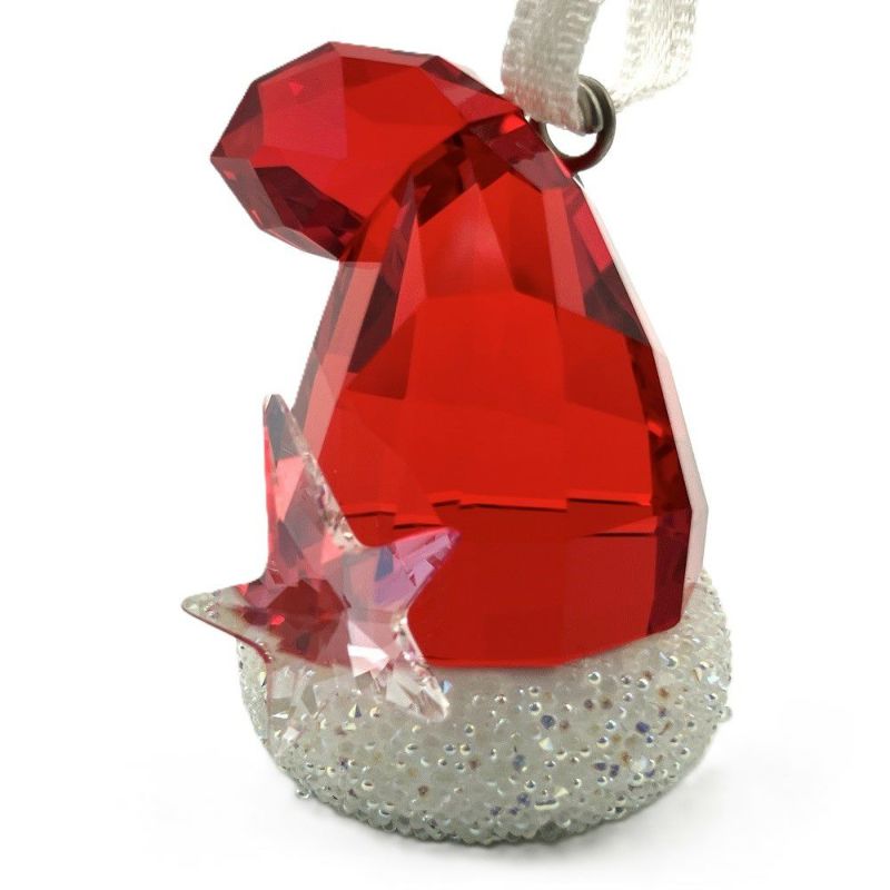 商品内容 2012年に廃盤となったサンタさんの帽子です。クリスマスツリーやリースの楽しい飾りになるサンタさんの帽子。このクリスタルでできた帽子の縁にはMoonlightクリスタルの星が1個飾られています。ホワイトのサテンリボンつき。コレクション、お友達、大切な方への贈り物としておすすめです。