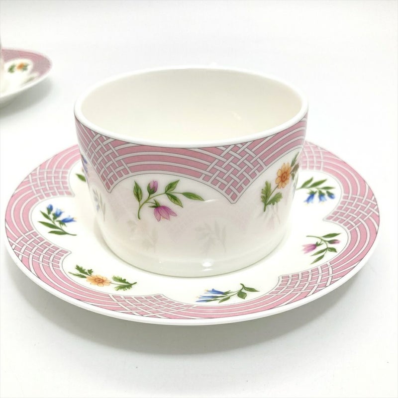 4. ティファニー Tiffany&Co. ブーケシリーズ BOUQUET デミタスカップ&ソーサー ペア ティーカップ 陶磁器 マルチカラー 花柄【中古】