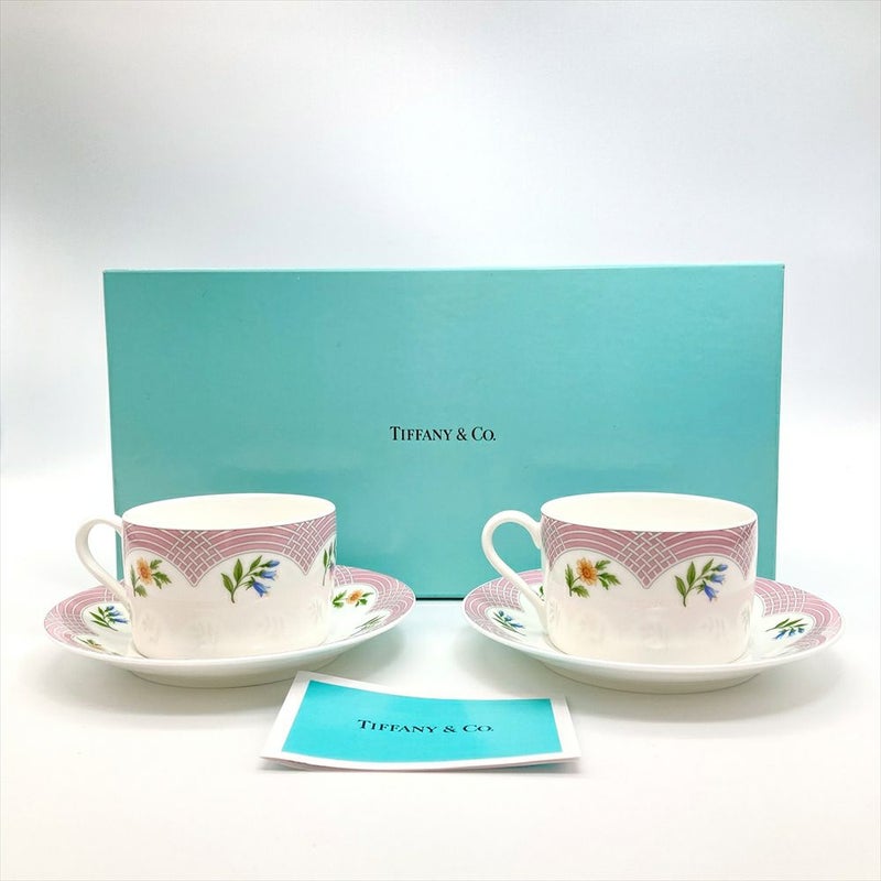 ティファニー Tiffany&Co. ブーケシリーズ BOUQUET デミタスカップ&ソーサー ペア ティーカップ 陶磁器 マルチカラー 花柄【中古】