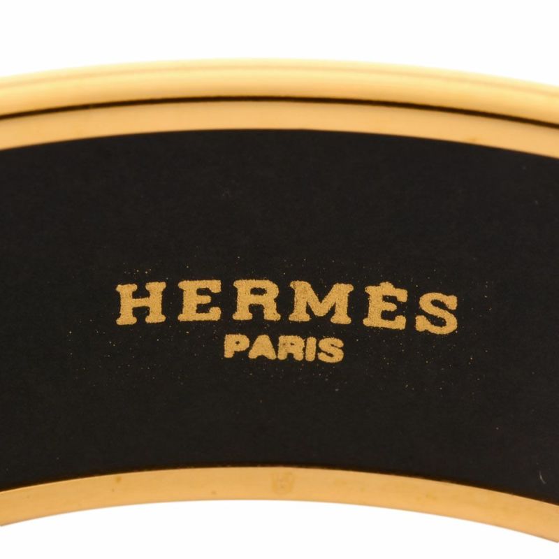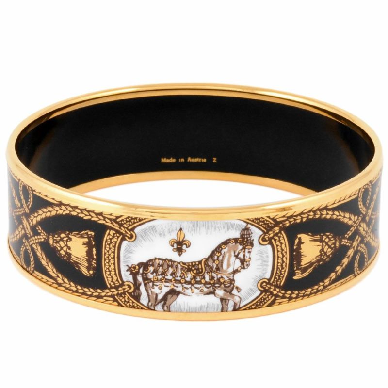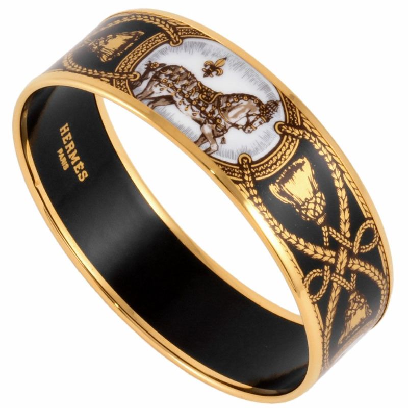 4. エルメス HERMES エマイユGM バングル カフ ブラック ゴールド金具 ホース タッセル ユニセックス【中古】