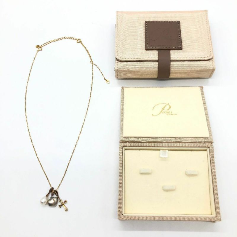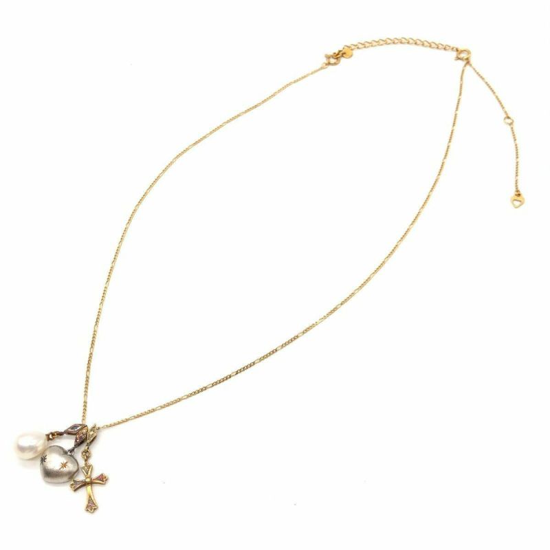 - ミキモト MIKIMOTO ペルリータ PERLITA ネックレス K18YG 5.6g シルバー 淡水パール イエローゴールド ハート クロス レディース【中古】