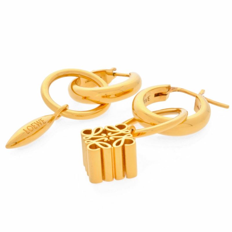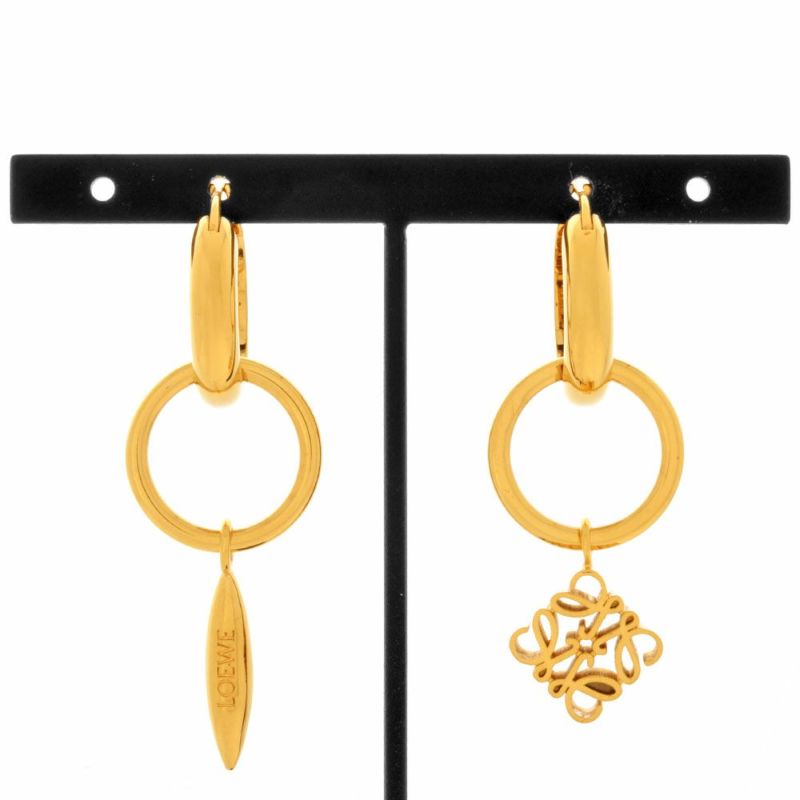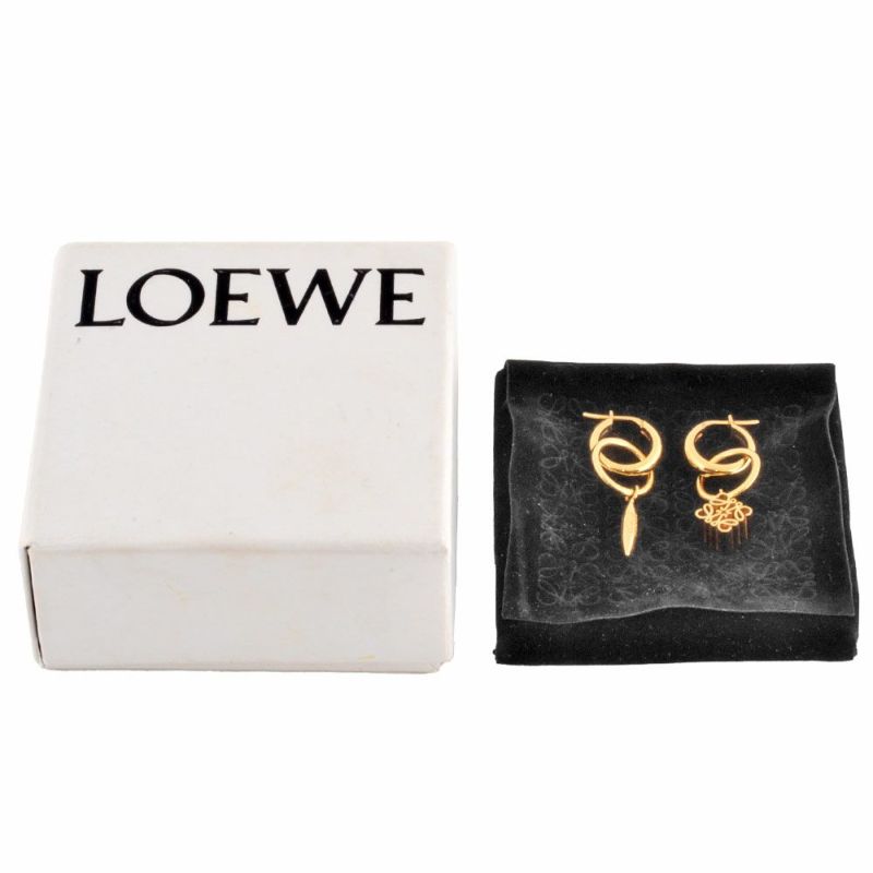 5. ロエベ LOEWE アナグラム アシンメトリー ピアス 真鍮g ゴールド ロゴ スイング レディース【中古】