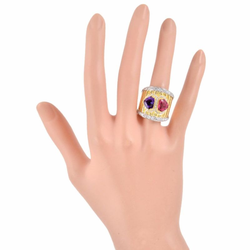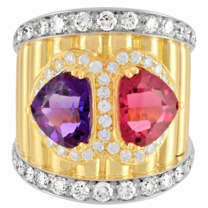 3. ピキョッティ PICCHIOTTI リング 指輪 アメジスト ルベライト ダイヤモンド 1.74ct 約13号 K18YG K18WG【中古】