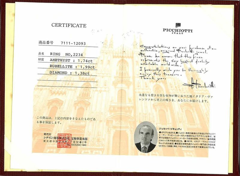 5. ピキョッティ PICCHIOTTI リング 指輪 アメジスト ルベライト ダイヤモンド 1.74ct 約13号 K18YG K18WG【中古】