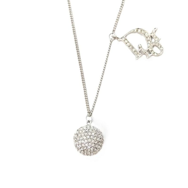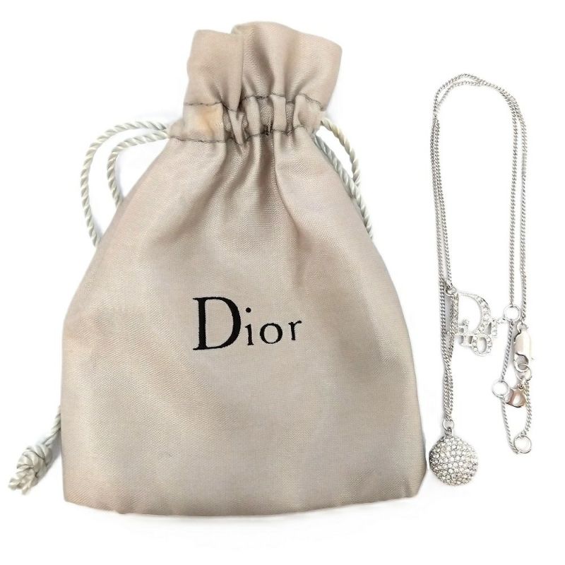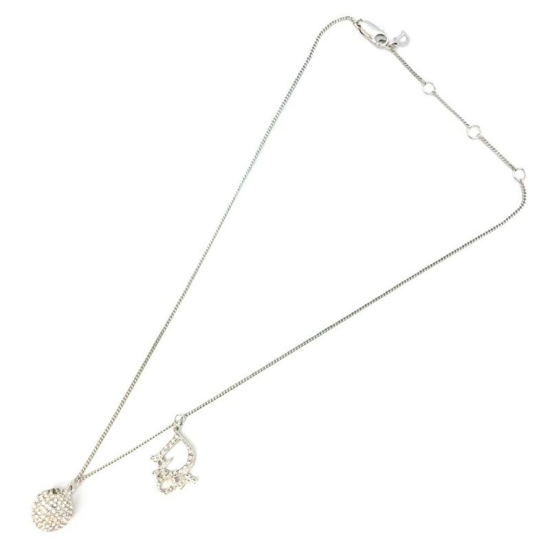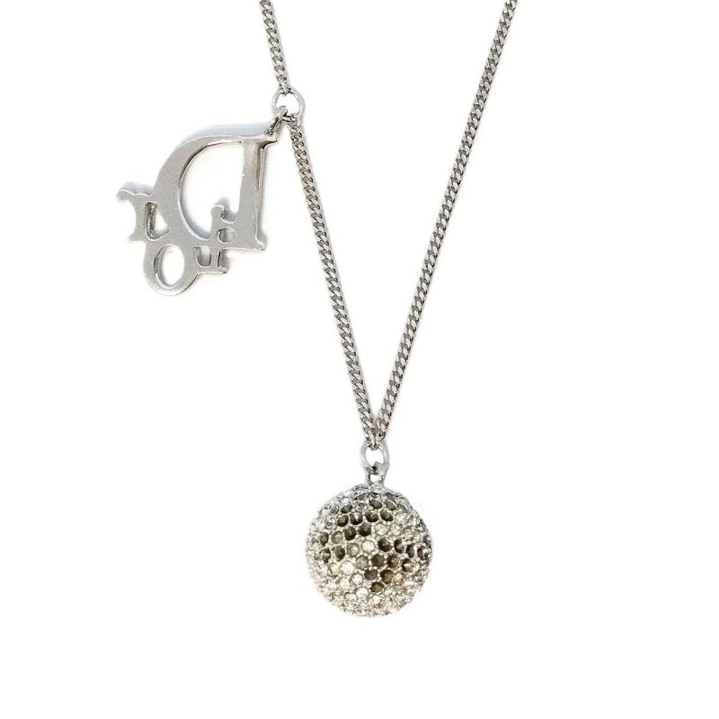 ディオール Dior ロゴ ミラーボール ネックレス シルバー ラインストーン 石取れ 訳あり GP【中古】