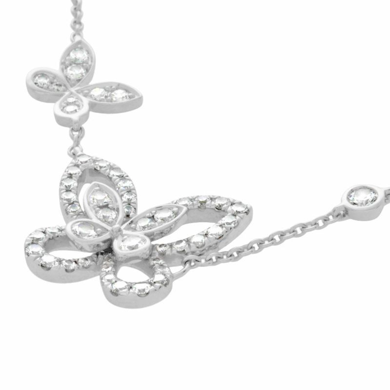 3. グラフ GRAFF ダブル バタフライ シルエット ネックレス ダイヤモンド K18WG 5.1g ホワイトゴールド レディース【中古】