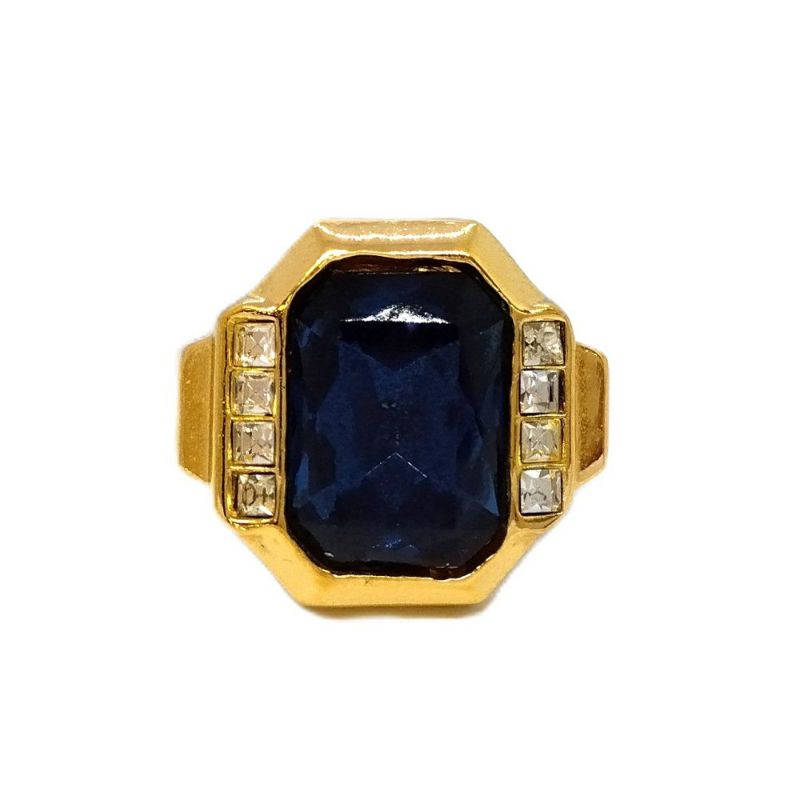 クリスチャンディオール Christian Dior リング 指輪 約10号 ゴールド 青 カラーストーン GP【中古】