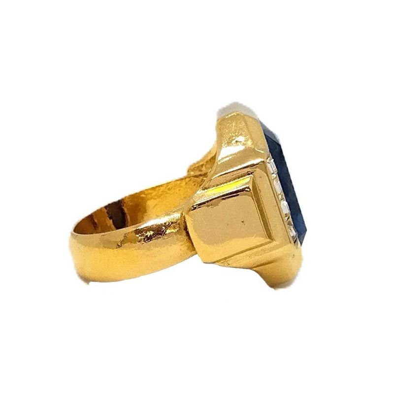3. クリスチャンディオール Christian Dior リング 指輪 約10号 ゴールド 青 カラーストーン GP【中古】