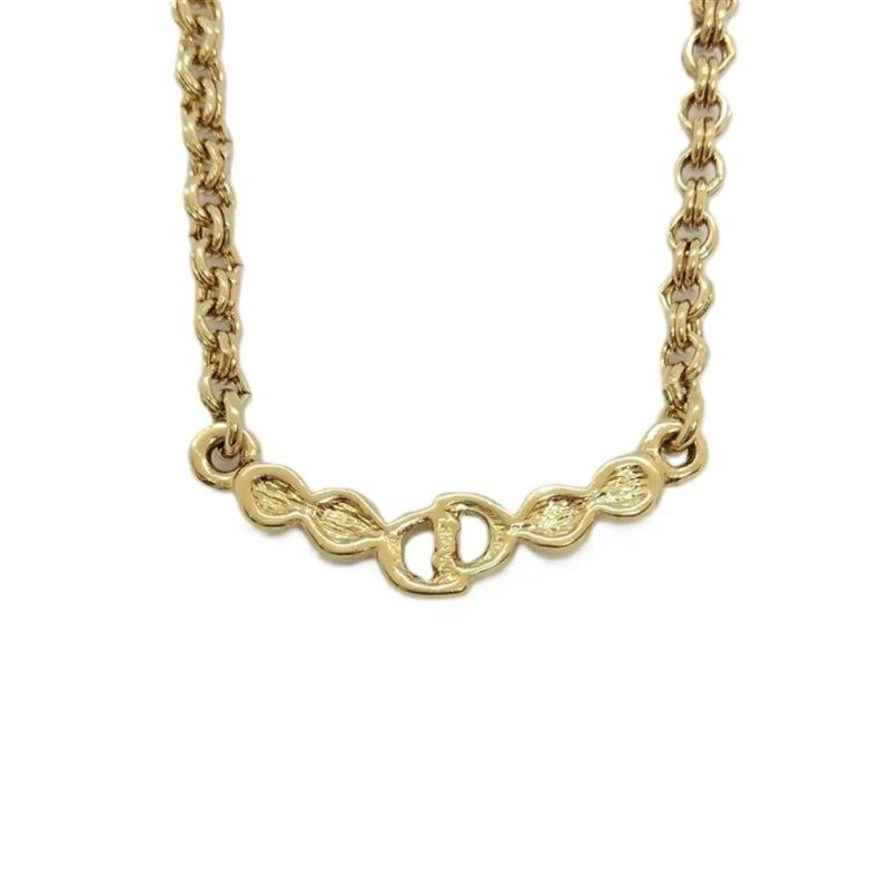 3. クリスチャンディオール Christian Dior CDロゴ 4P ラインストーン GP ネックレス ゴールド【中古】