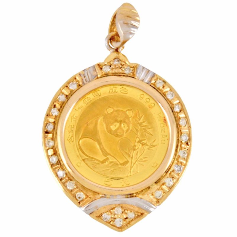 パンダ金貨 5元 コイントップ ペンダントトップ ゴールド 純金 K24【中古】