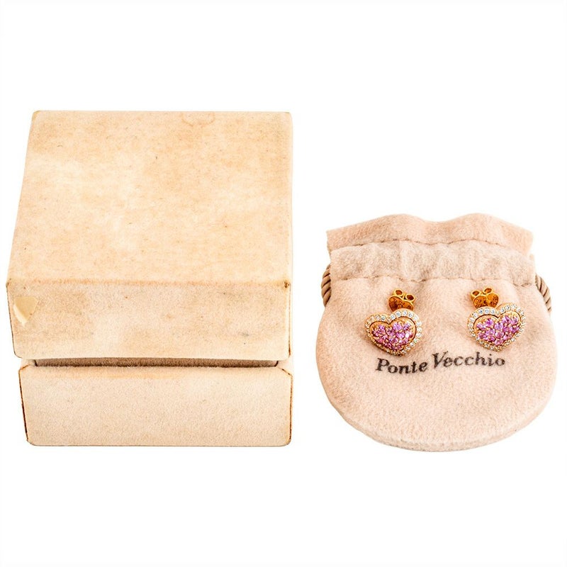 ポンテヴェキオ Ponte Vecchio ハート ピアス サファイア 計1.24ct K18PG 計6.7g ピンク ダイヤモンド ピンクーゴールド レディース【中古】