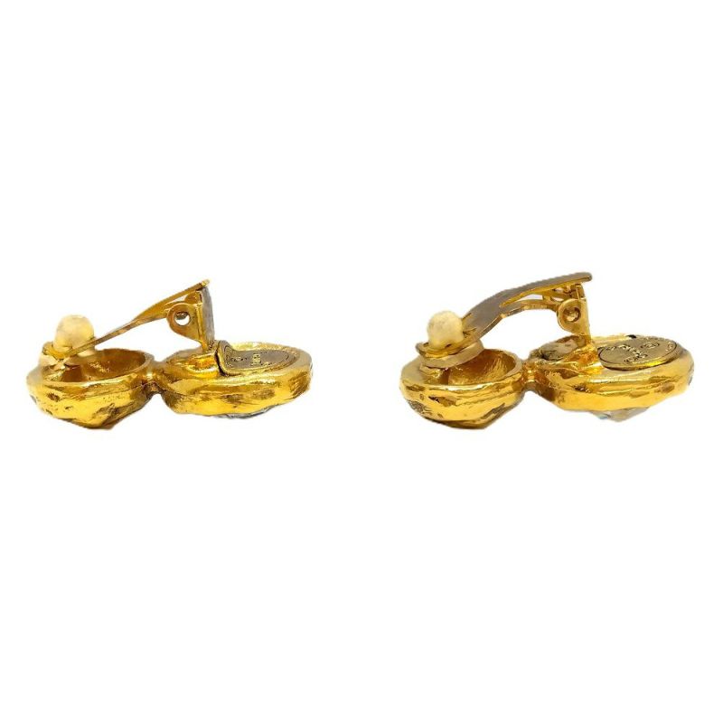 3. シャネル CHANEL イヤリング ゴールド クリスタル ラウンド クリップ式 GP【中古】