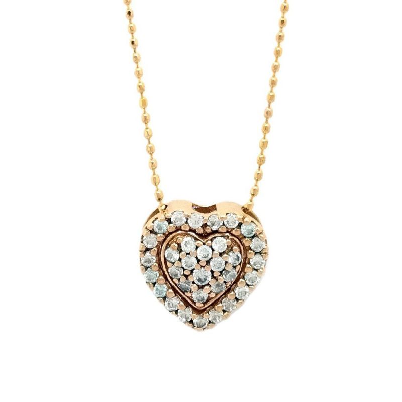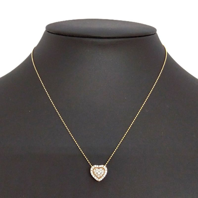 3. フォリフォリ Folli Follie ネックレス K10PG 2.4g ゴールド ハート ラインストーン【中古】