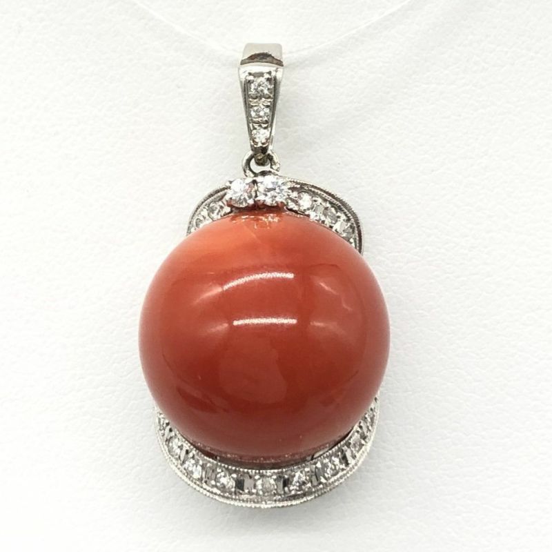Pt900 赤珊瑚 ペンダントトップ 赤サンゴ コーラル ダイヤモンド 17.9mm 約15.7g