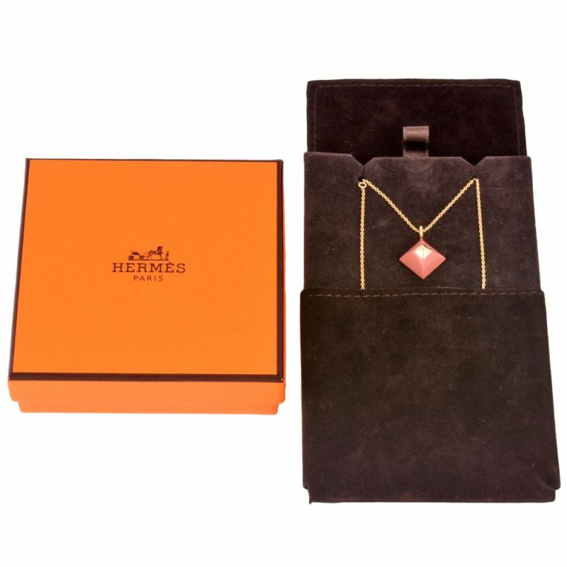3. エルメス HERMES メドール キュピドン ネックレス GP ピンク ゴールド金具【中古】