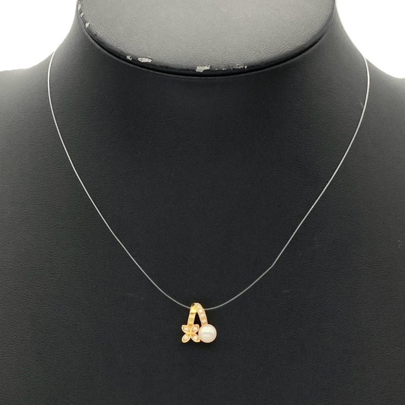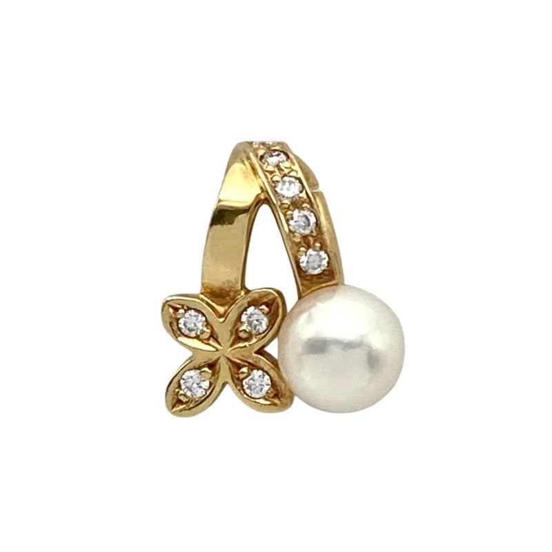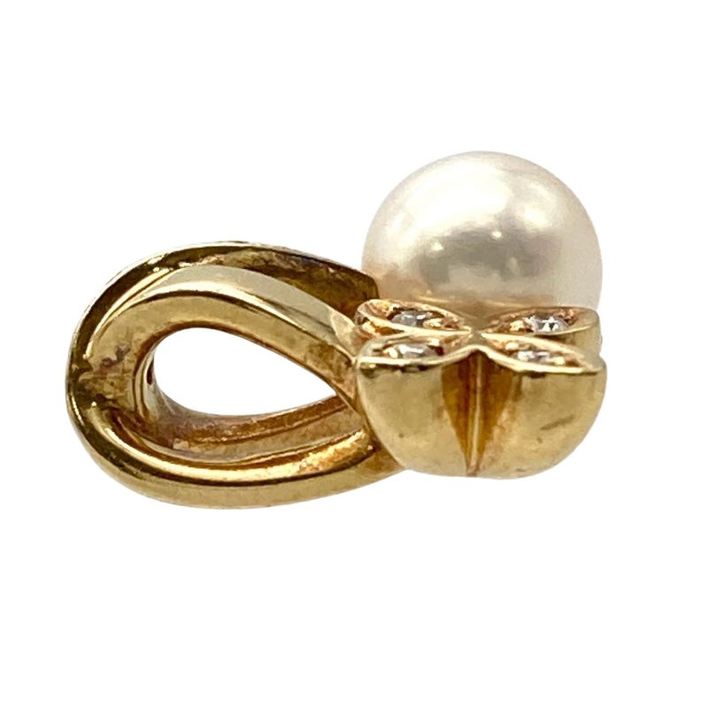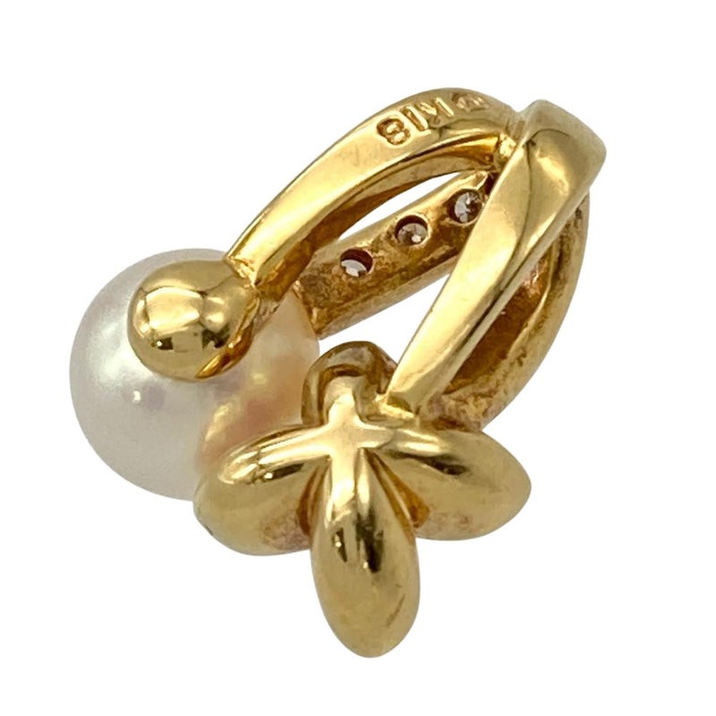 ミキモト MIKIMOTO パール 1P ペンダントトップ ダイヤモンド K18YG 2.1g 真珠 イエローゴールド フラワーモチーフ レディース【中古】
