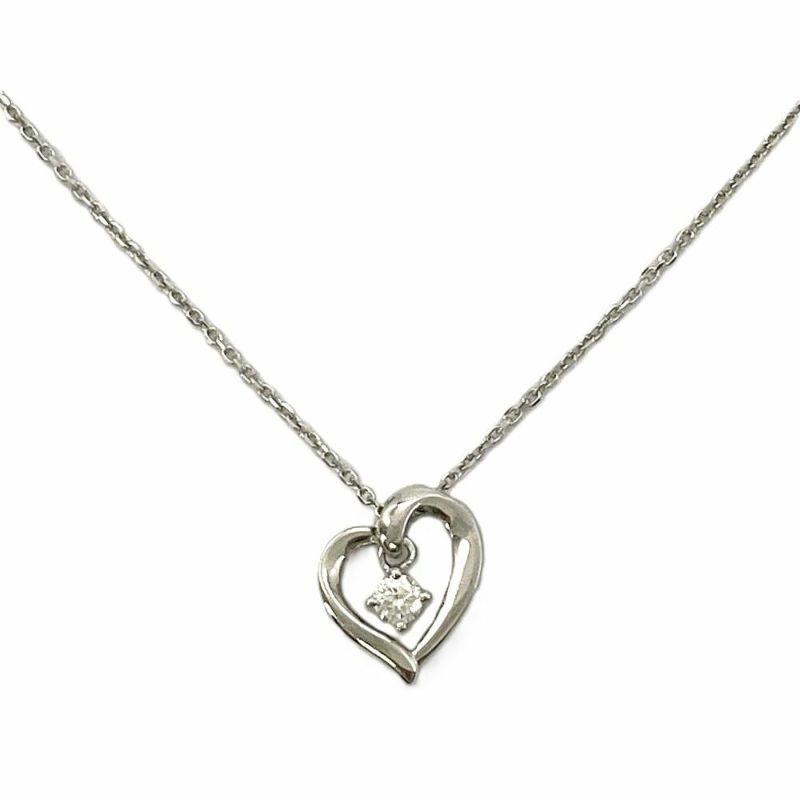 3. ヨンドシー 4℃ ハートモチーフ ネックレス ダイヤモンド Pt850 K18 アジャスター レディース【中古】