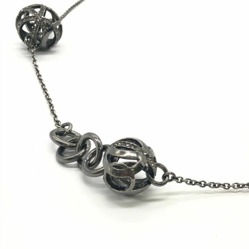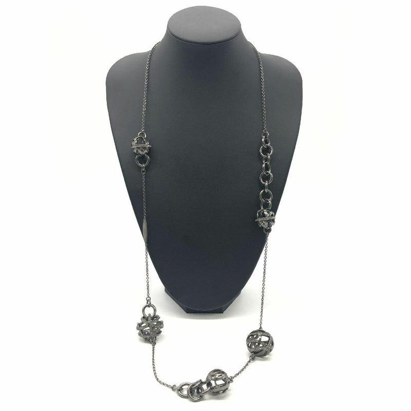 Salvatore Ferragamo サルヴァトーレ フェラガモ ロングネックレス ラインストーン ボール ガンメタル 106cm
