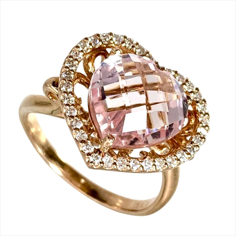 モルガナイト ハート リング 指輪 モルガナイト 3.44ct 約11号 K18PG 5.0g ダイヤモンド 0.22ct ピンクゴールド【中古】