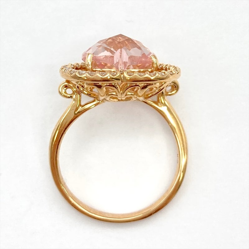 4. モルガナイト ハート リング 指輪 モルガナイト 3.44ct 約11号 K18PG 5.0g ダイヤモンド 0.22ct ピンクゴールド【中古】