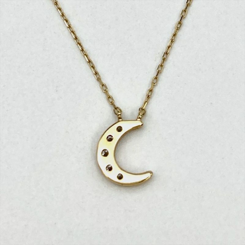 3. エテ ete ネックレス ダイヤモンド K10 1.2g ゴールド ムーンモチーフ 月 アジャスター付き レディース【中古】