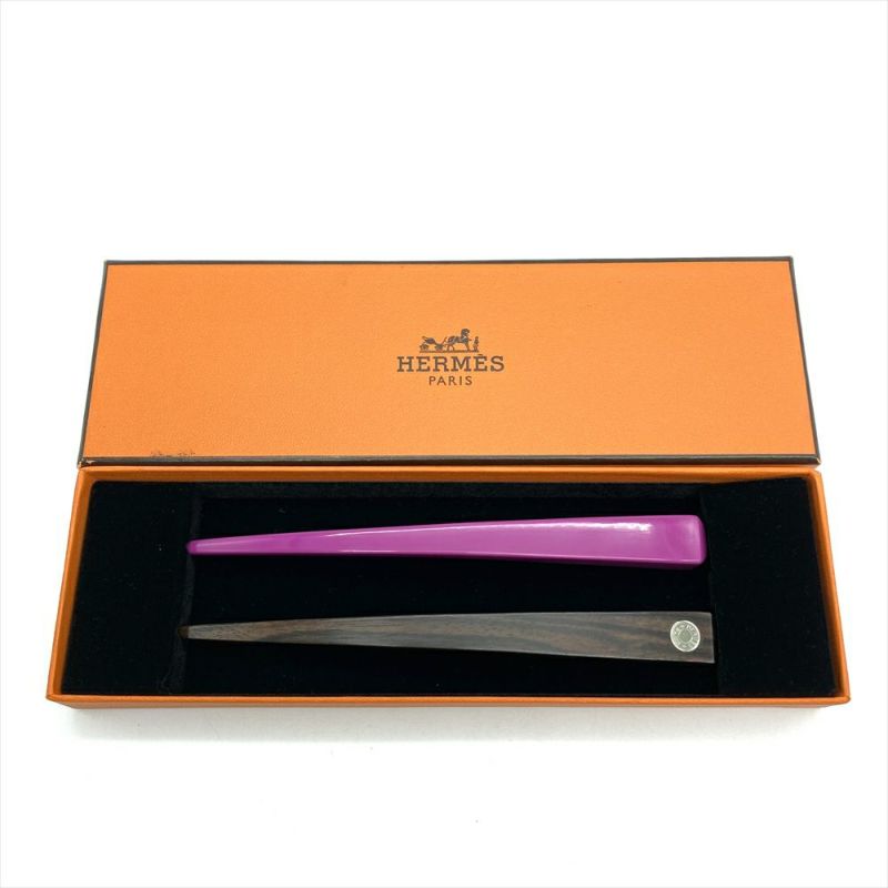 5. エルメス HERMES 簪 髪飾り かんざし ウッド 15cm パープル レディース【中古】