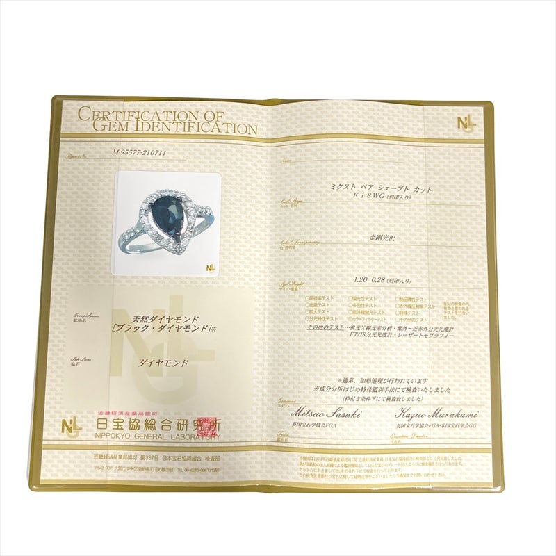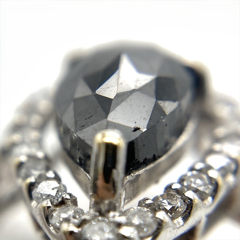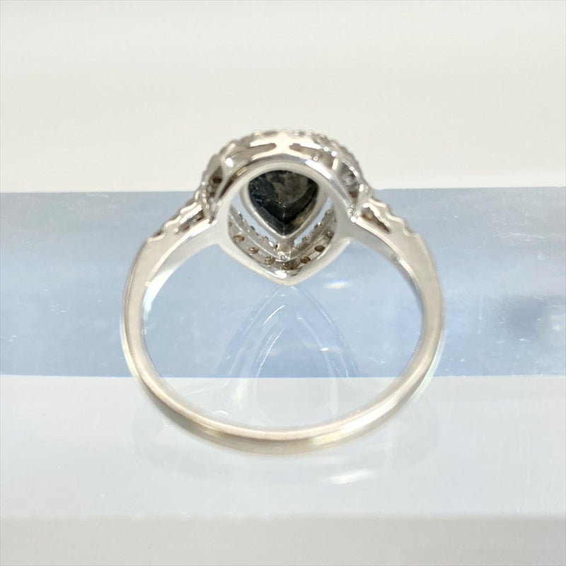 4. ドロップ モチーフ リング 指輪 ブラックダイヤモンド 1.20ct 約11号 K18WG 3.2g ホワイトゴールド レディース【中古】