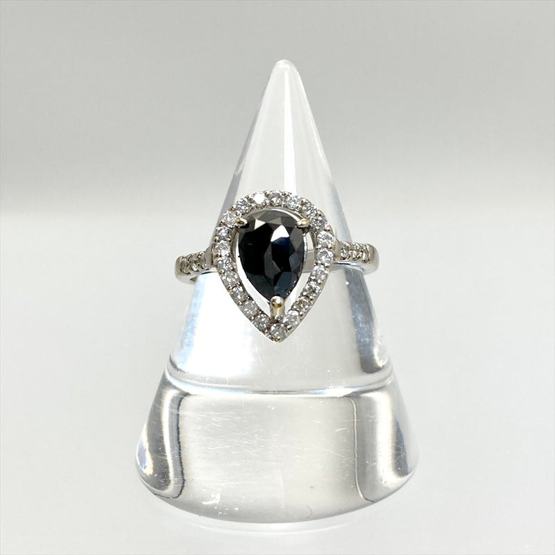 3. ドロップ モチーフ リング 指輪 ブラックダイヤモンド 1.20ct 約11号 K18WG 3.2g ホワイトゴールド レディース【中古】