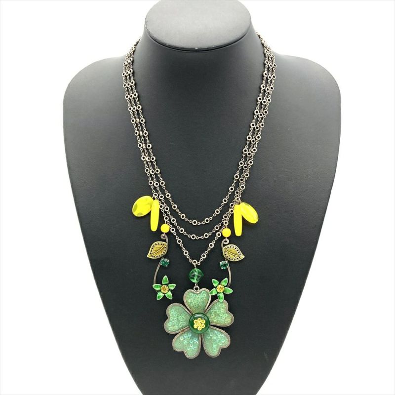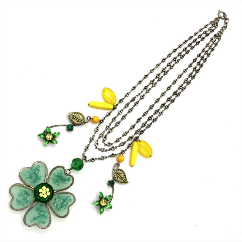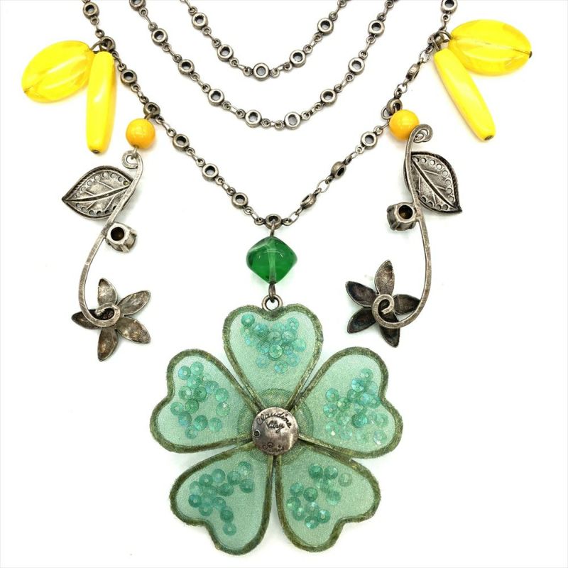 4. Claudine Vitry クロディーヌヴィトリー フラワー ネックレス メタルg グリーン レディース【中古】