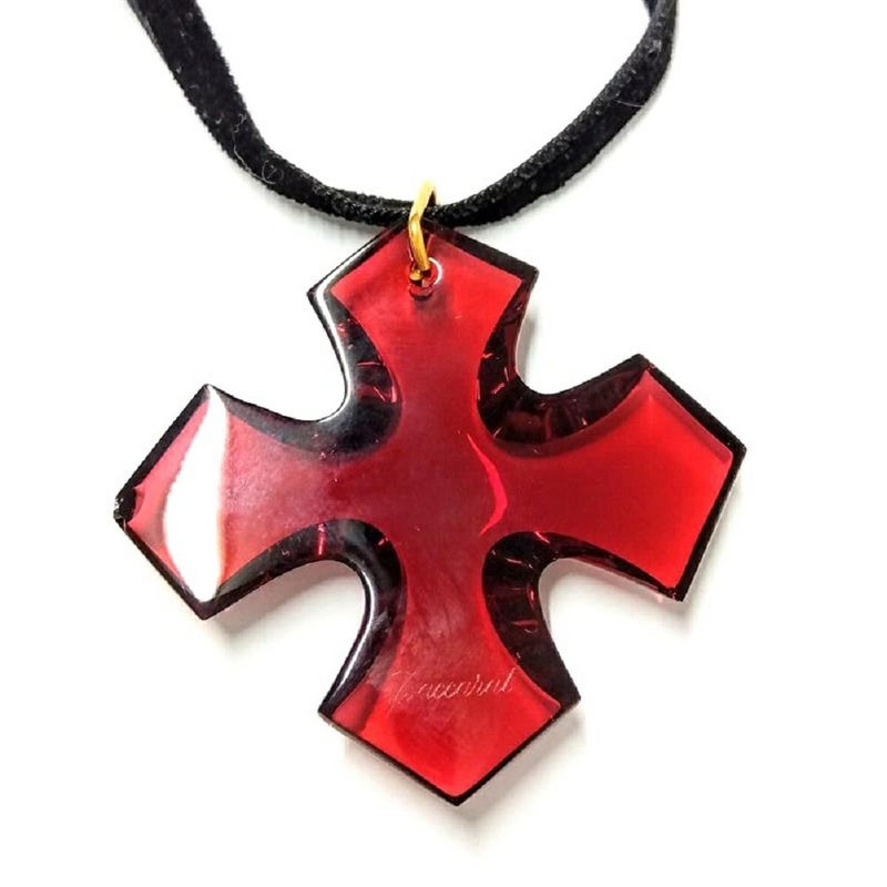 バカラ Baccarat オクシタンクロス ネックレス K18YG 26.2g レッド【中古】