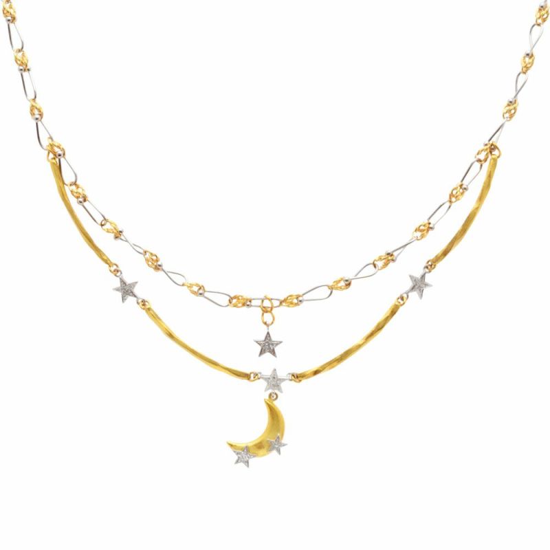 石川暢子 ISHIKAWA NOBUKO アズタイム ムーン モチーフ ネックレス ダイヤモンド 0.03ct K18YG 22.5g Pt900 月 スター【中古】