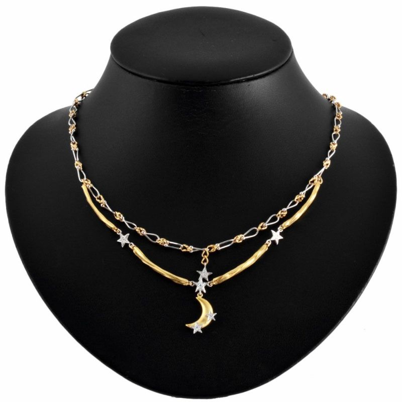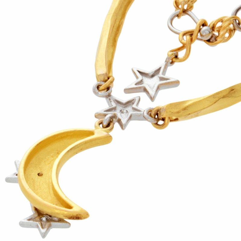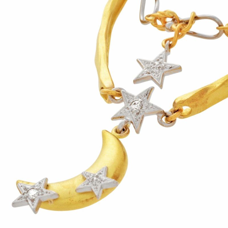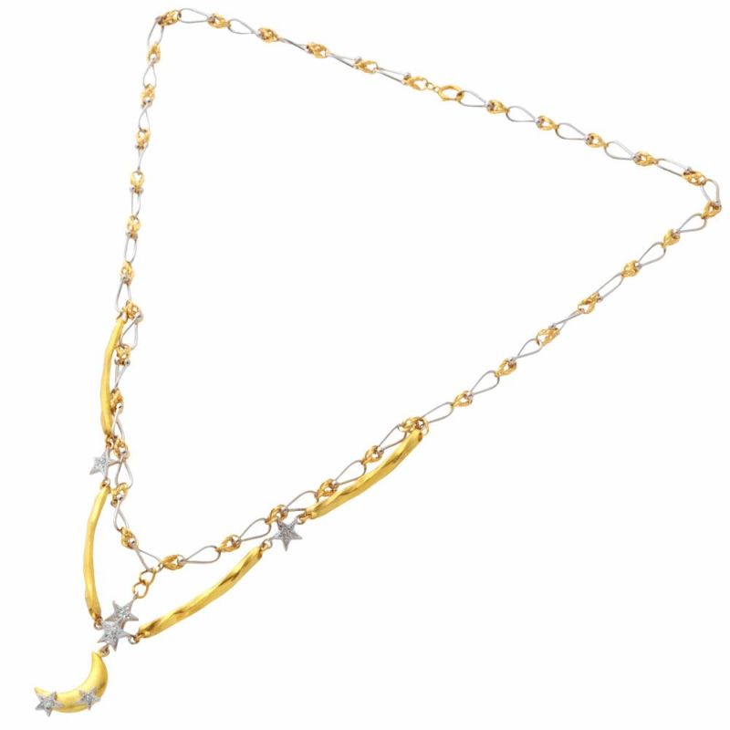 3. 石川暢子 ISHIKAWA NOBUKO アズタイム ムーン モチーフ ネックレス ダイヤモンド 0.03ct K18YG 22.5g Pt900 月 スター【中古】