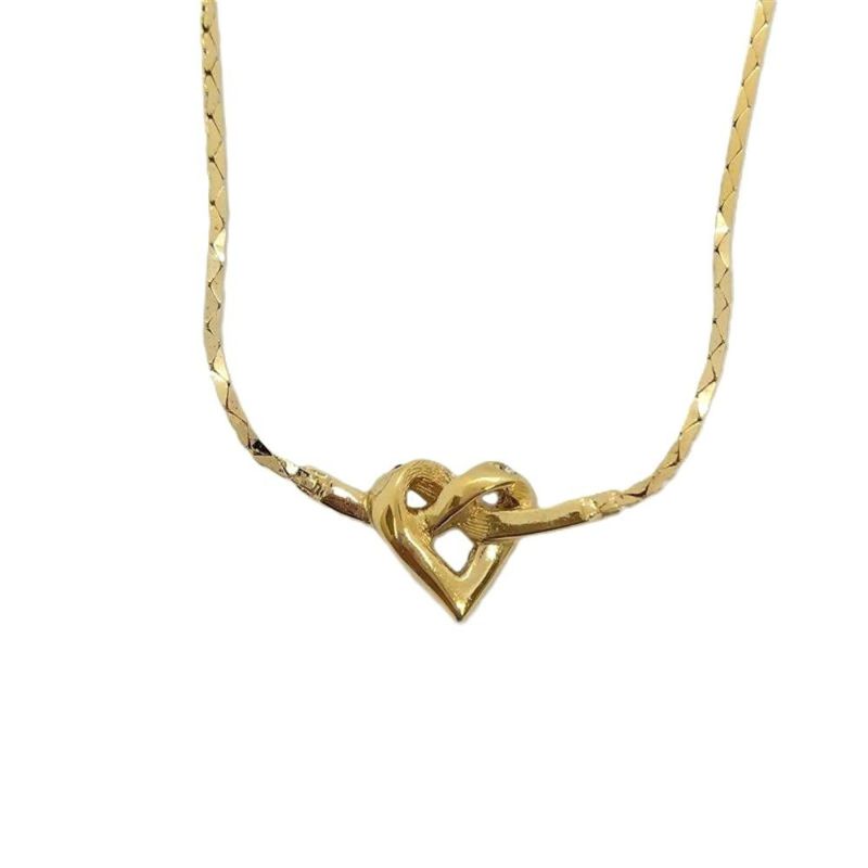 クリスチャンディオール Christian Dior ハートモチーフ ラインストーン GP ネックレス ゴールド ヴィンテージ【中古】