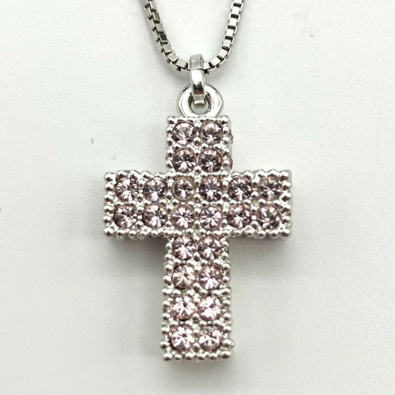 商品内容 Cross Light Amethystペンダントです。Light Amethystクリスタルのパヴェが施されたロジウムコーティングのクロスペンダントで流行に左右されない、上品なデザインのアクセサリーです。