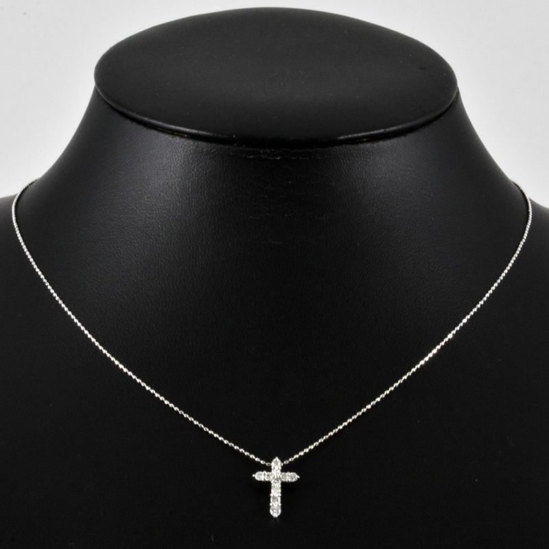 4. ツツミ TSUTSUMI クロスペンダント ネックレス ダイヤモンド 0.30ct K14WG 1.7g 0.30ct レディース【中古】