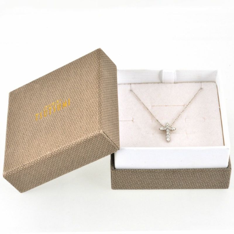 3. ツツミ TSUTSUMI クロスペンダント ネックレス ダイヤモンド 0.30ct K14WG 1.7g 0.30ct レディース【中古】