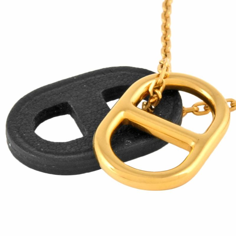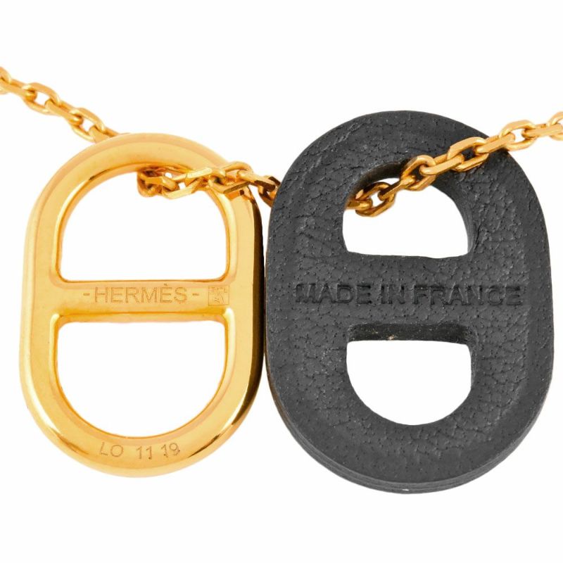 3. エルメス HERMES シェーヌダンクル オーマイヨン ネックレス GP レザー ゴールド金具 50.5cm 4.5g レディース【中古】