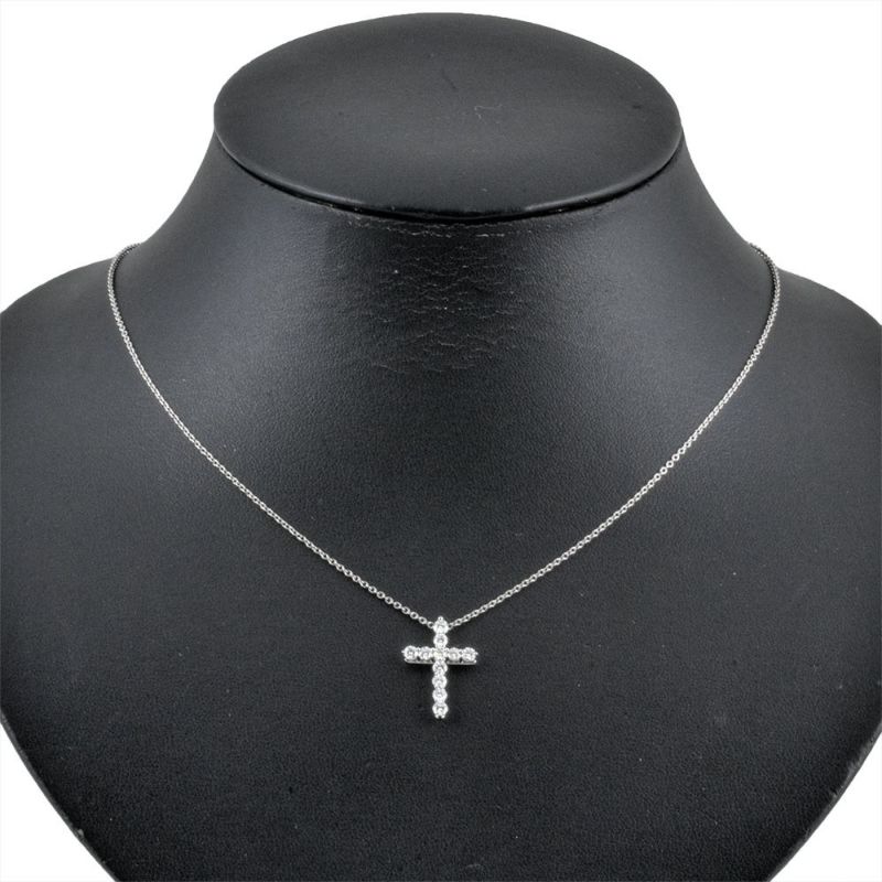ティファニー Tiffany&Co. スモール クロス ネックレス ダイヤモンド Pt950 3.4g プラチナ ペンダント レディース【中古】